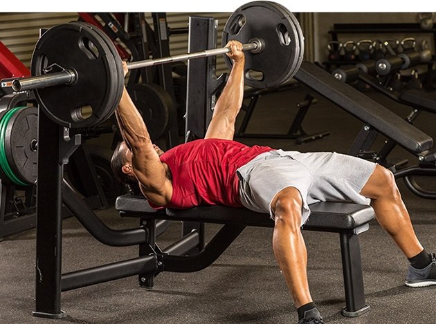 Когда вы ставите руки максимально близко к блинам, угол предплечий становится тупым, и они опять не перпендикулярны полу. Акцент смещается на грудные мышц, особенно внешние их отделы: растет нагрузка на плечи. В таком положении трицепсы выполняют гораздо меньший объем работы, но зато вы можете поднимать больший вес, поскольку активнее загружаете грудь и сокращаете траекторию движения штанги. Впрочем, многие замечают, что за этот прирост силы приходится расплачиваться болью в плечах.